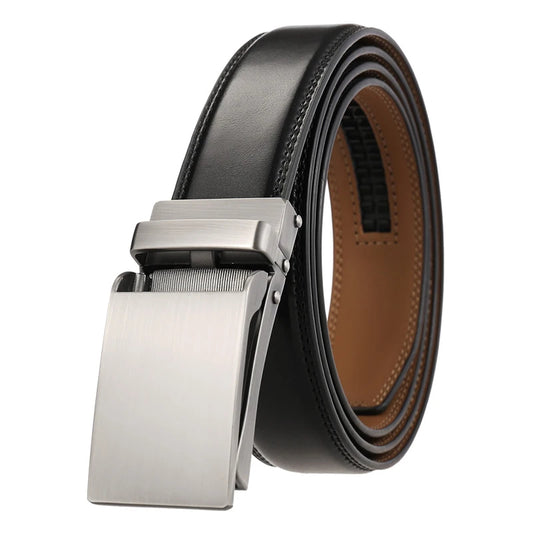 Cinto de Couro Luxuoso com Fivela Automática Prata
